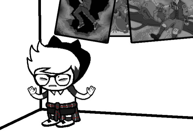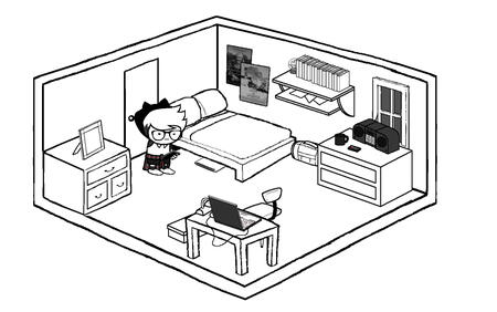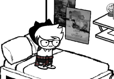 You take a look at the posters plastered on your wall. You'd like to put up a few more, if only you had more space. There are quite a lot of things you're interested in:films, minecraft, musicals, pokemon, drag racePlastered on the other side of the wall are art pieces that you used to be very much proud of. You wonder when you can be able to draw again.